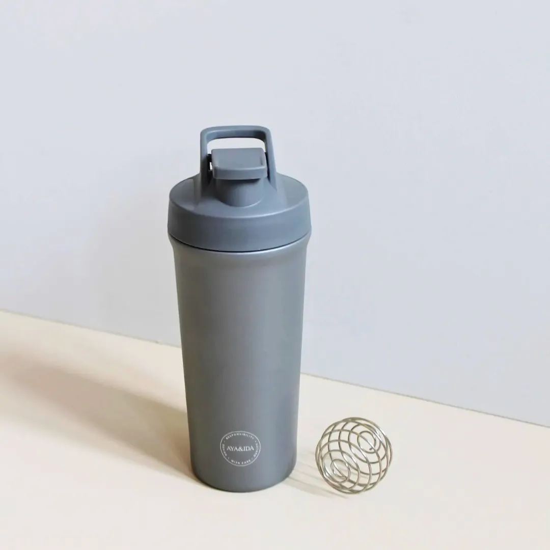 „Shaker Bottle“ – tai sportinių gėrimų buteliukas, skirtas jūsų treniruotėms, kaip vandens buteliukas arba baltymų kokteilis – jis puikiai tinka abiem atvejais. „AYA&IDA Shaker Bottle“ butelis pagamintas iš 1 sluoksnio pirmos klasės nerūdijančio plieno 18/8 ir polipropileno plastikinio dangtelio. Buteliukas skirtas greitam naudojimui, be termo funkcijos, todėl puikiai tinka greitam kokteiliui prieš ar po treniruotės.
